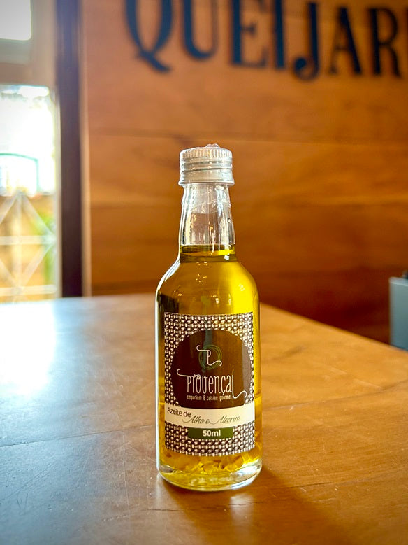 Esse azeite é uma combinação perfeita para os amantes de alho. Dê um toque especial naquela tábua de queijos ou pizza do fim de semana. Ingredientes: azeite extra virgem (0,5% de acidez), alecrim, alho e flor de sal.