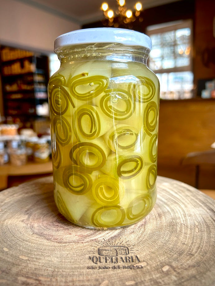 Delicie-se com a compota de anéis de mamão em calda Rancho Paraíso. Produto artesanal, com sabor autêntico, ideal para acompanhar sobremesas ou lanches, preservando o frescor e doçura natural da fruta.